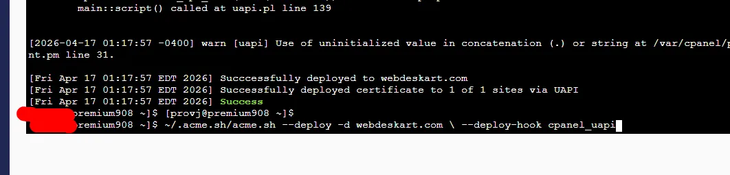 ~/.acme.sh/acme.sh –deploy -d yourdomain.com –deploy-hook cpanel_uapi